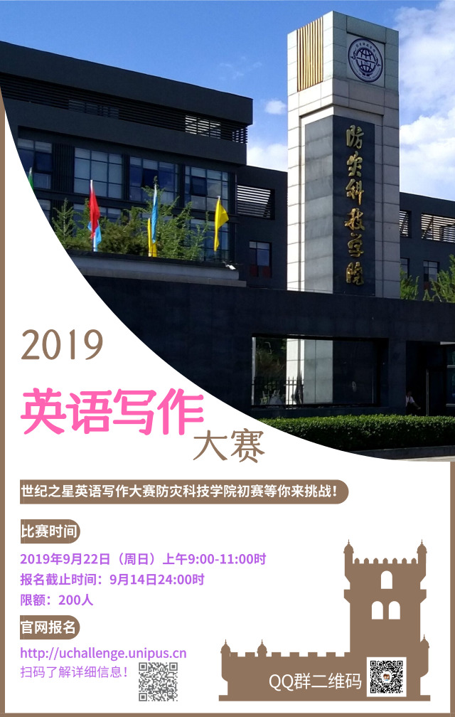 河北省高等学校“世纪之星”英语写作大赛是河北省教育厅和河北省高等学校外语教学研究会联合举办的全省高校外语赛事,是我省在校大学生展示外语综合技能的舞台。根据大赛章程,本校定于2019年9月22日上午9:00-11:00举办河北省高等学校第七届英语写作大赛beat365中文官方网站初赛。具体安排如下: