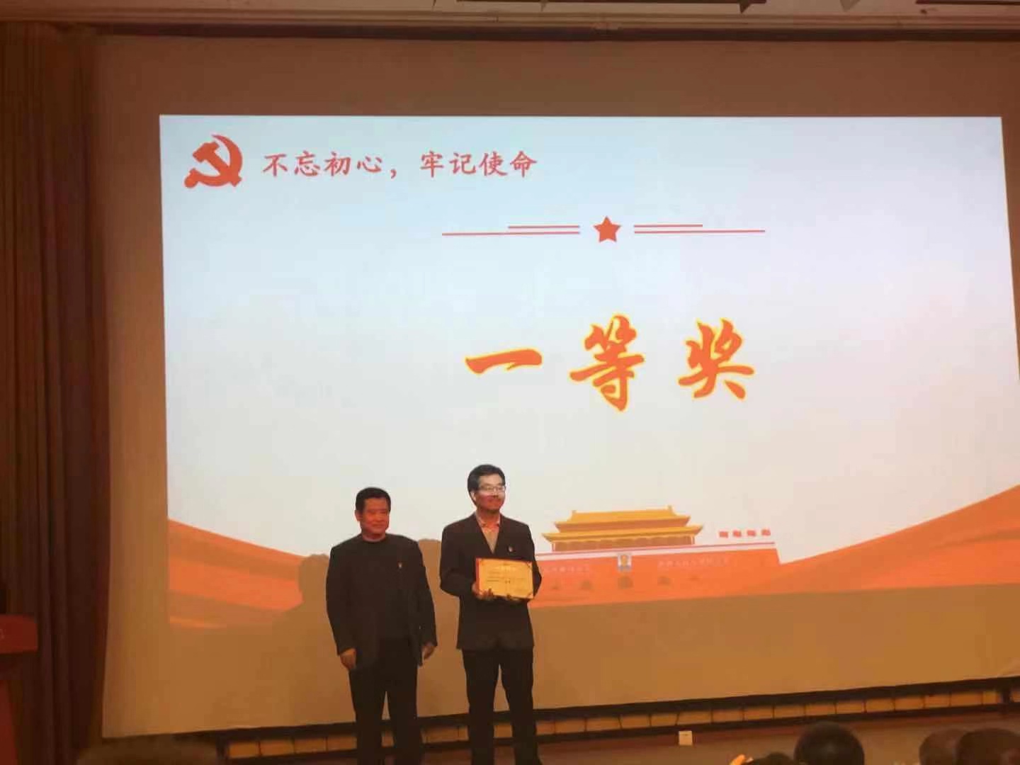 为深入学习贯彻习近平新时代中国特色社会主义思想和党的十九大精神,创新党员主题教育形式,提升党员教育培训效果,11月21日下午,beat365官网“不忘初心、牢记使命”微党课比赛决赛在图书馆报告厅成功举办。beat365中文官方网站选派张志华参加了决赛。在此之前,beat365中文官方网站英语专业教研室和公共英语教研室两个支部分别进行了预赛。经过层层选拔,张志华同志脱颖而出,代表beat365中文官方网站参加了beat365官网的决赛。在决赛上,张志华围绕八个英文关键词,从语言的传播功能入手,解析了党的十九届四中全会公报。其微党课立意新颖、语言流畅、富有感染力,获得现场热烈的掌声,最终不负众望,荣获比赛一等奖,beat365官网党委书记齐福荣为其颁发了荣誉证书。