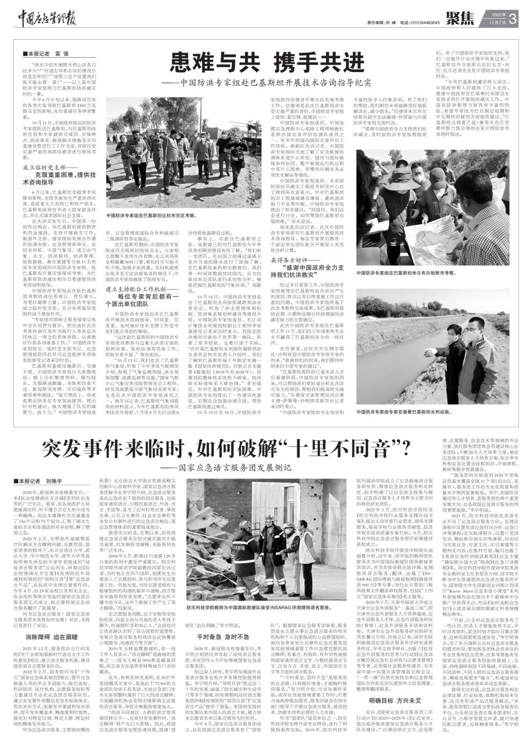 2022年11月《中国应急管理报》开展了“国家应急语言服务团发展侧记”专访。鉴于beat365官网beat365中文官方网站多年来在应急语言服务实践、教学科研、应急语言服务特色教材建设、应急语言服务人才培养等方面具有扎实的工作基础,该专访特对beat365官网beat365中文官方网站进行了采访,beat365中文官方网站三名教师接受采访。2022年11月7日,《中国应急管理报》刊登题为“突发事件来临时,如何破解‘十里不同音’”的专访。 (供稿:beat365中文官方网站)