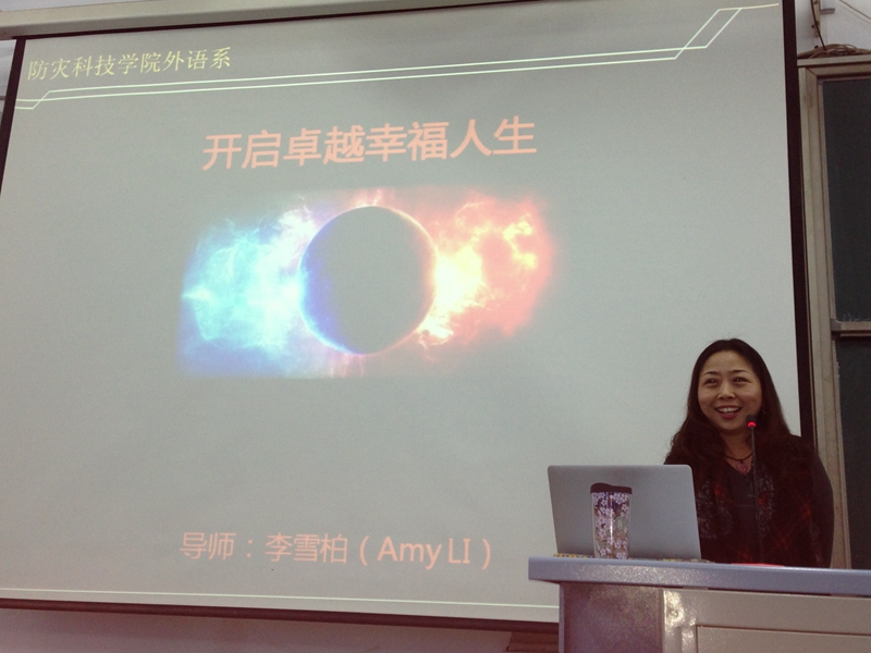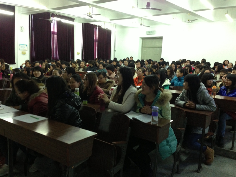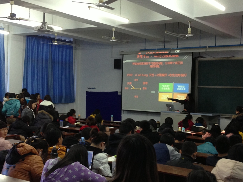 为了帮助我系学生对就业与职场人生有更具体的认识,外语系特邀北京彩虹国际教育中心创始人李雪柏女士来beat365官网做大学生就业指导系列讲座——开启卓越幸福的人生。讲座分别在2013年11月21日(5J11)和28日下午(5J33)举行,我系多数同学聆听了讲座。本次系列讲座内容丰富,形式活泼,与学生实际紧密结合,取得了令人满意的效果。