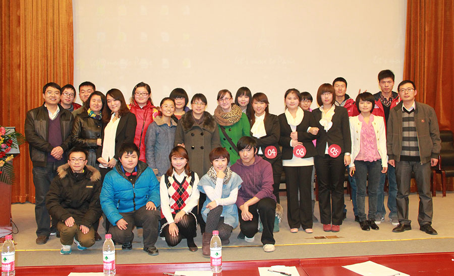 经过我系团总支、学生会的紧张筹备,2011年11月4日19:00在图书馆报告厅,外语系第四届“青春飞扬”杯英语演讲比赛如期举行。报告厅经过精心的布置,显得简朴大方,颇有文化氛围。座位前排就座的是本次比赛的评委老师:Neil,Caroline,冯雷老师,王冬梅老师,霍雨光老师。到场的嘉宾有外语系党总支书记于会珍老师和团总支书记刘艳增老师。