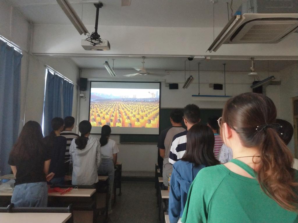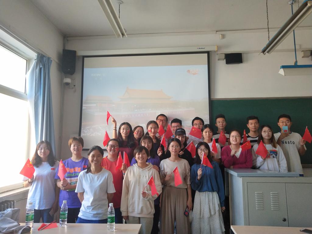 10月1日上午九时,beat365官网学子端坐在教室里,在荧幕前共赏阅兵大典。主持人带领我们追忆旧时光,感慨时代的进步、国家的强盛。记者则向我们深情讲述阅兵礼背后的人文故事。十时许,习近平总书记等国家领导人来到主席台。随后,李克强总理宣布大会开始,在70炮礼炮的齐鸣声中,国旗在国歌的伴奏下缓缓升至顶端。教室里的每个人都不约而同的站起来,挥舞着手中的国旗,将心中的千言万语融入国歌声中。紧接着,在天安门城楼上,习近平总书记面向全国人民发表重要讲话。大家都屏息凝神,全神贯注的聆听着总书记的金玉良言。上午十时二十许,阅兵式正式开始。随后的一个小时里,大家看着一个个威武雄壮的方队从荧幕前走过,心头不禁涌上自豪之情。在大典的尾声,群众游行方阵的出场把大家带入了轻松愉悦的氛围。方阵运用各种形象鲜明的象征物,记录了我国70年来走过的风雨征程。大典结束后,beat365官网学子在图书馆前进行合影留念。