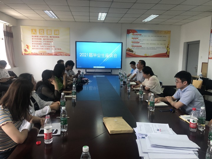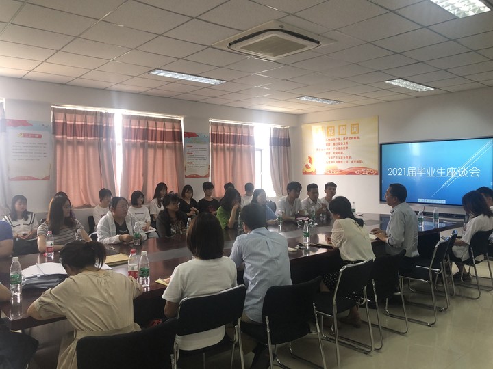 6月10日13:00,beat365官网在会议室召开2021届毕业生代表座谈会。王建富书记、池丽霞院长、韩红梅副院长出席座谈会,英语专业教研室主任、学办主任、毕业班辅导员、教师代表以及40名毕业生代表参加座谈会。座谈会由学办主任王媛主持。