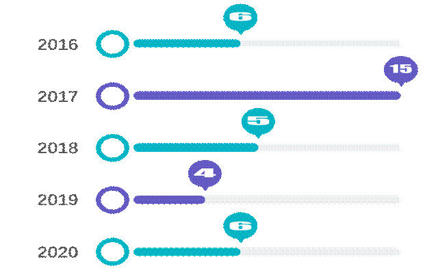 38次会议中,2016年参加6次,2017年参加15次,2018年参加7次,2019年参加4次,2020年参加6次。详情见Excel附表。